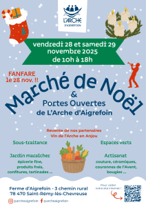 L’Arche d’Aigrefoin vous invite à son traditionnel Marché de Noël & Portes Ouvertes de l’E.S.A.T le VENDREDI 28 et le SAMEDI 29 NOVEMBRE 2025, de 10h à 18h, à la Ferme d’Aigrefoin, située à Saint-Rémy-lès-Chevreuse.